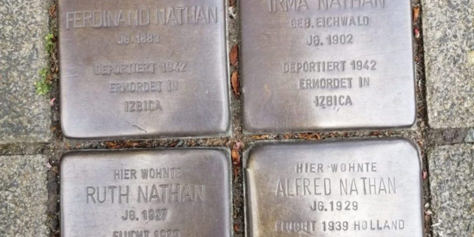 Warum gedenkt Bärbel Bas nun ausgerechnet dieser Frau? Irma Nathan lebte mit ihrer Familie in der Duisburger Lerchenstraße, nur unweit von Bärbel Bas‘ Wohnhaus entfernt. Als Anwohnerin nahm Frau Bas 2006 an der Verlegung der Stolpersteine teil, die vor der Hausnummer 25 an die Familie erinnern sollen. Diese persönliche Verbindung, das tägliche Vorbeigehen an ebenjenem Ort und das ergreifende Schicksal der Familie bewegten die Bundestagspräsidentin dazu, eine Kerze für Irma Nathan zu entzünden. Wir erinnern und gedenken ebenfalls.