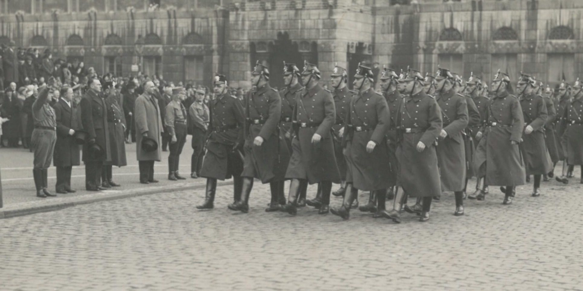 Abb. 1: Rückkehr der Duisburger Schutzpolizei vom Einsatz im besetzten Sudetenland, 1939. Foto: Stadtarchiv Duisburg, Fotosammlung, Nationalsozialismus/2. Weltkrieg A Nr. 1