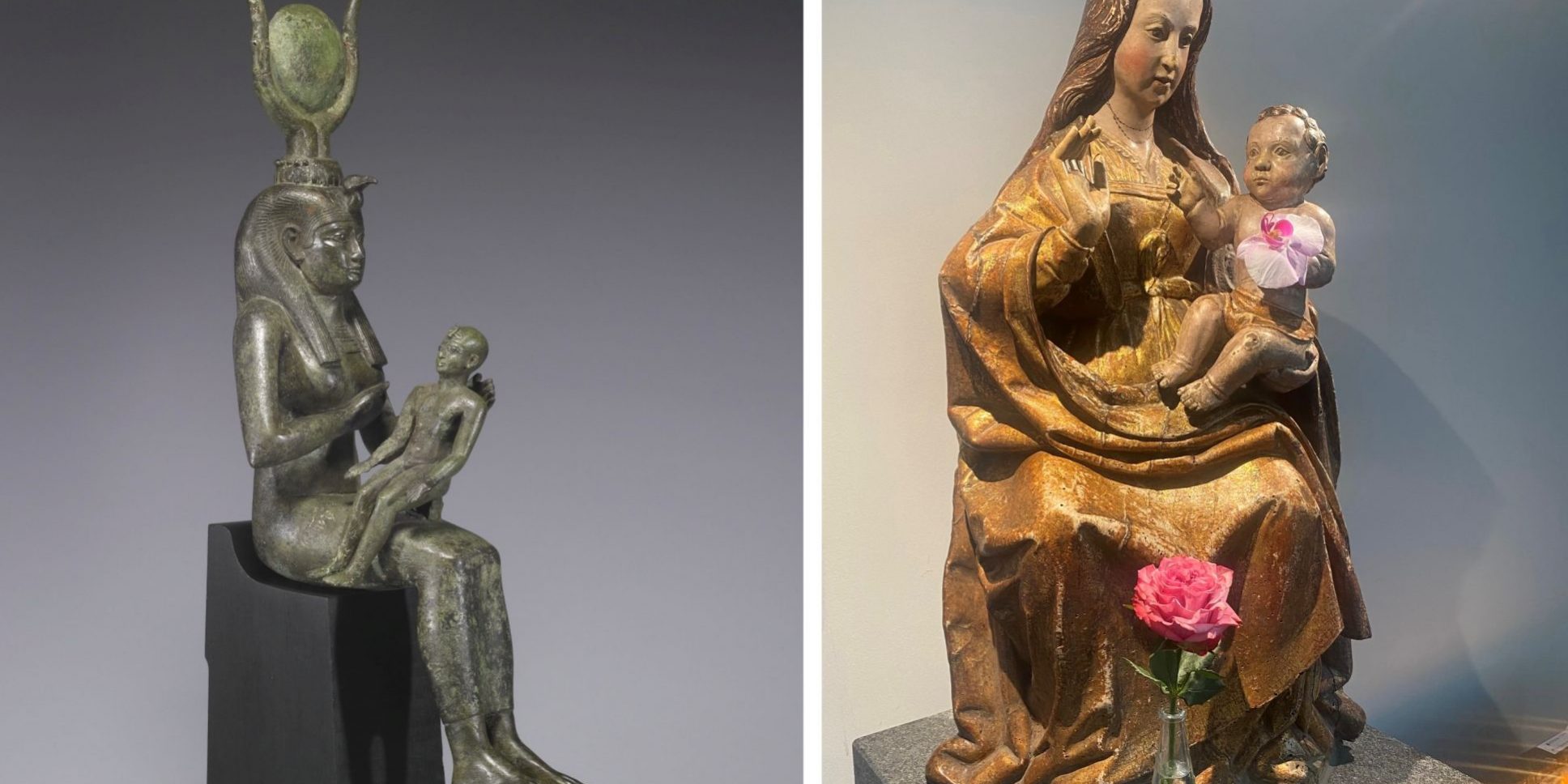 RP: Ihre Ausstellung „Göttliche Geheimnisse“ im Stadtmuseum zeigt die Göttin Isis mit dem Horusknaben. Eine Mutter-Figur, die dem Kind auf ihrem Schoß die Brust bietet. Das ähnelt Maria mit dem Jesusknaben in der Karmelkirche am Innenhafen. Trifft das zu ?