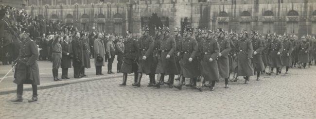 Abb. 1: Rückkehr der Duisburger Schutzpolizei vom Einsatz im besetzten Sudetenland, 1939. Foto: Stadtarchiv Duisburg, Fotosammlung, Nationalsozialismus/2. Weltkrieg A Nr. 1 Die Kriminalpolizei war neben der Verwaltungspolizei, die vor allem Aufgaben des heutigen Ordnungsamtes wahrnahm, und der Schutzpolizei, eine eigene Abteilung innerhalb des Präsidiums. Ihre Zuständigkeit umfasste das gesamte Spektrum der Kriminalität; die strategische Ausrichtung…