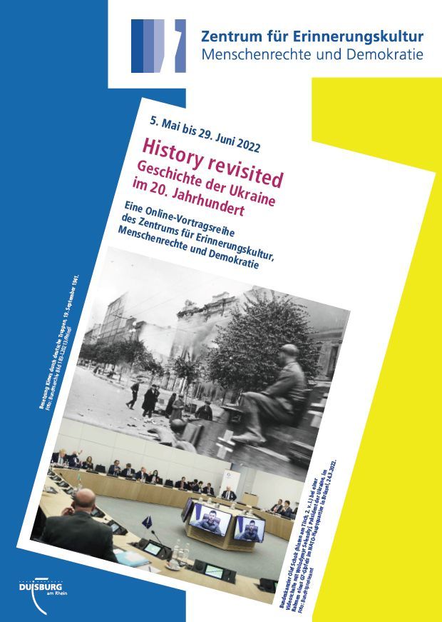 History revisited – Geschichte der Ukraine im 20. Jahrhundert Geschichte der Ukraine im 20. Jahrhundert Eine Online-Vortragsreihe des Zentrums für Erinnerungskultur, Menschenrechte und Demokratie Unter dem Eindruck des brutalen russischen Angriffskriegs auf die Ukraine veranstaltet das Zentrum für Erinnerungskultur, Menschenrechte und Demokratie der Stadt Duisburg im Mai und Juni eine Online-Vortragsreihe zur Geschichte der Ukraine…